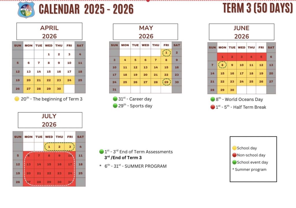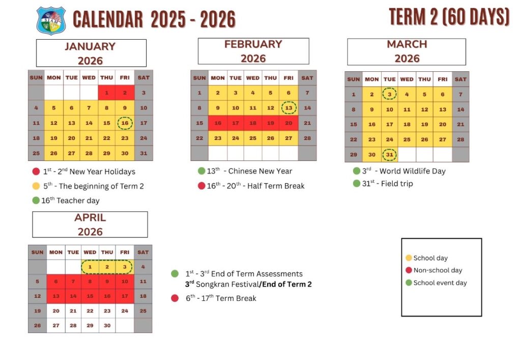 2025-2026 学年校历 | 暹罗国际学校